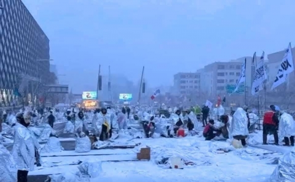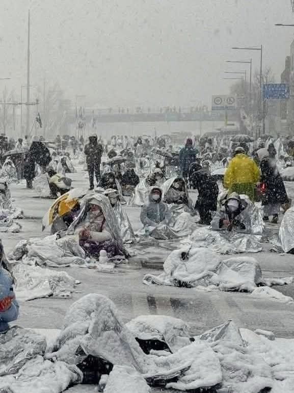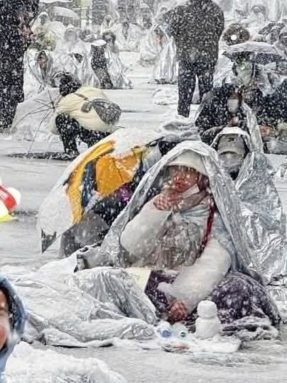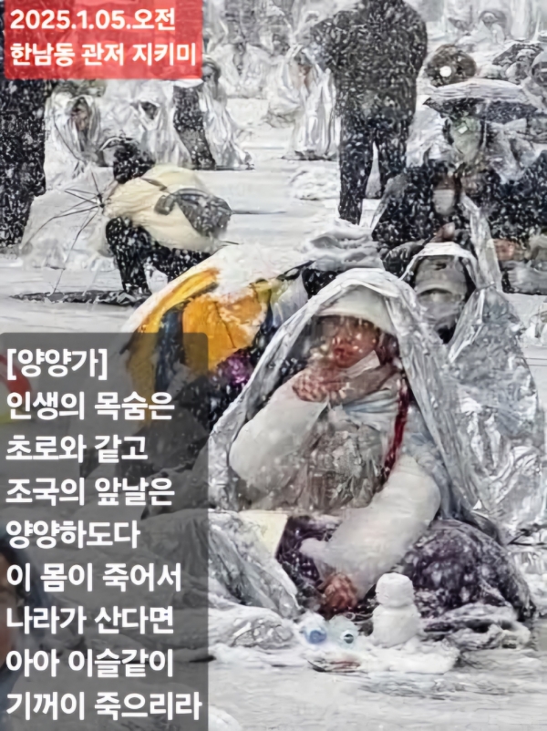 자유를 사랑하는 국민들은 눈 비가 내리는 5일 한남동 대통령 관저 근처로 모여들었다.