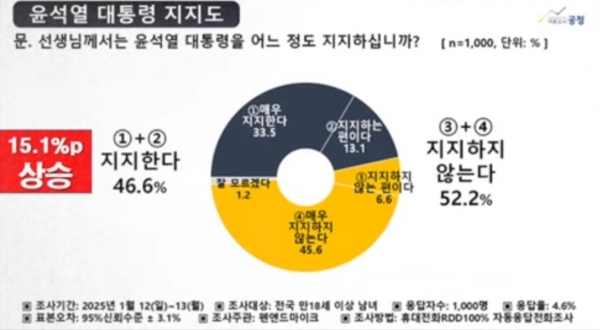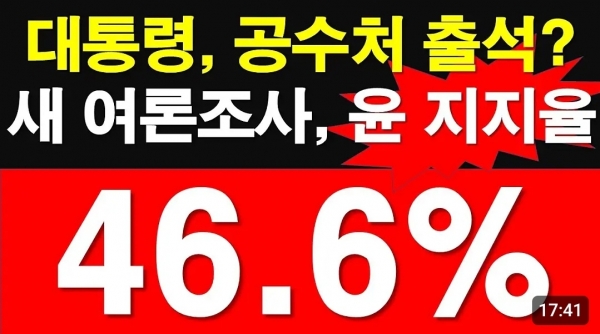 윤석열 대통령 지지율 46.6%다. 표본오차 플러스 마이너스 3.1%로다.