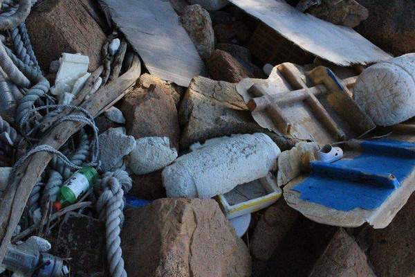 부서진 배, 비닐돗자리, 심지어는 의자까지 온갖 종류의 쓰레기가 즐비했지만, 그 중에 가장 큰 비율을 차지하는 것은 플라스틱류 쓰레기와 폐스티로폼이었다.