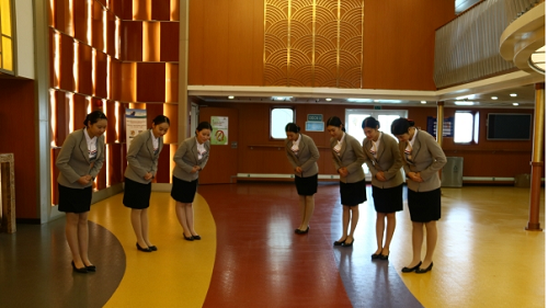 선박에는 한번에 1,500명이 승선할 수 있는 300여개의 객실이 있으며, 각 객실에는 개인용 침대 및 화장실/세면대가 구비되어 있으며 TV시청도 가능하다.