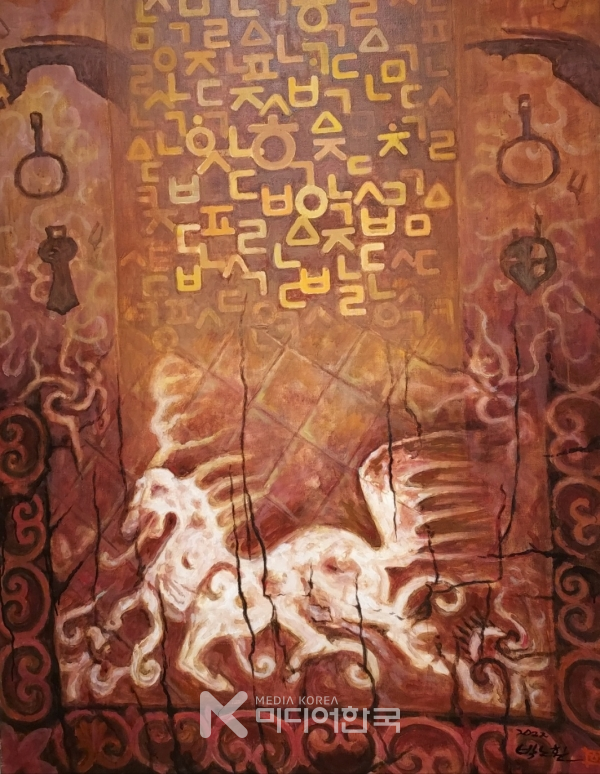 자유 대한민국의 문화 융성의 5차원의 예술을 박노환 화백이 한글을 그리다