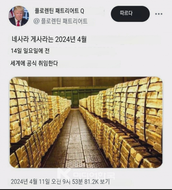 [미디어한국] 트럼프 대통령. 네사라 게사라 공표? 더 이상 인류는 가난이 없는 세상이 오고 있다. 이메일(으)로 기사보내기 다른 공유 찾기 기사스크랩하기 관련기사 [포토] 어제의 범죄를 벌하지 앓으면 그것은 내일의 범죄에 용기를 주는 것 [정치] 오 그대여 돌아와요 한동훈...국회앞 줄줄이 이어지는 화환! [총선] 민경욱. 사전선거 부풀리기로 낙선한 국민의힘 출마자들...총52명 명단 황천보 기자 hmk0697@msnews.co.kr 다른기사 보기 + 저작권자 © 미디어한국 무단전재 및 재배포 금지