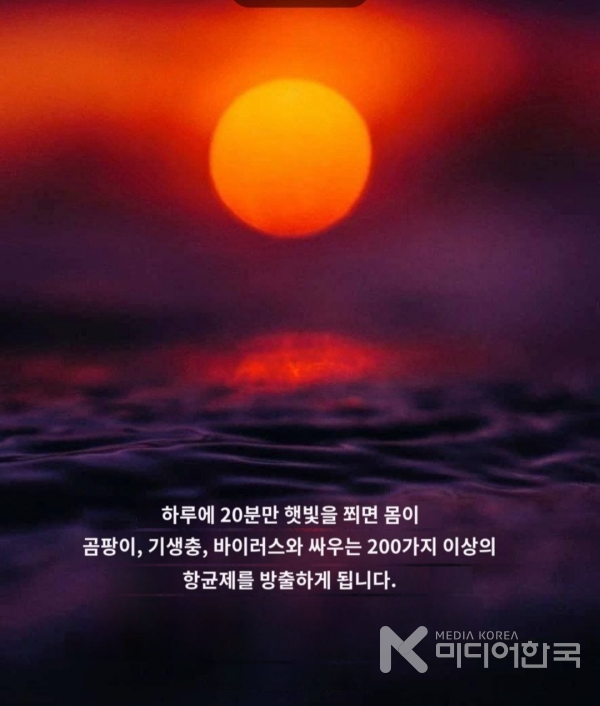 [미디어한국] 햇빛은 보약이다. 비타민D 외 200여 가지의 항균제를 방출한다.