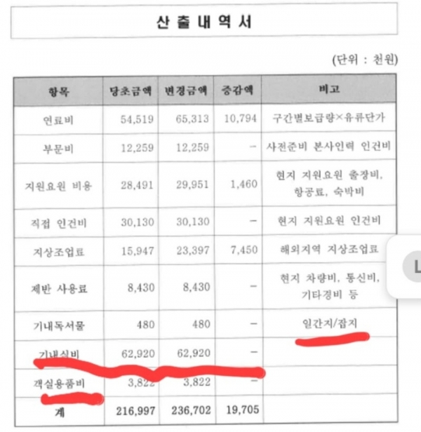 기내식 1등석 단가도 10만원인데 그 4배가 훌쩍 넘는 4,50만원?