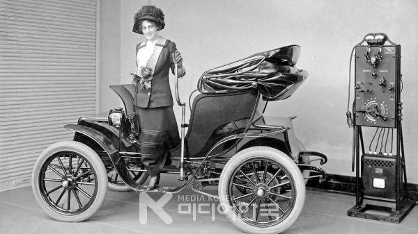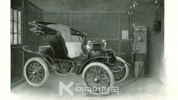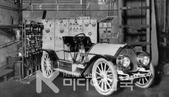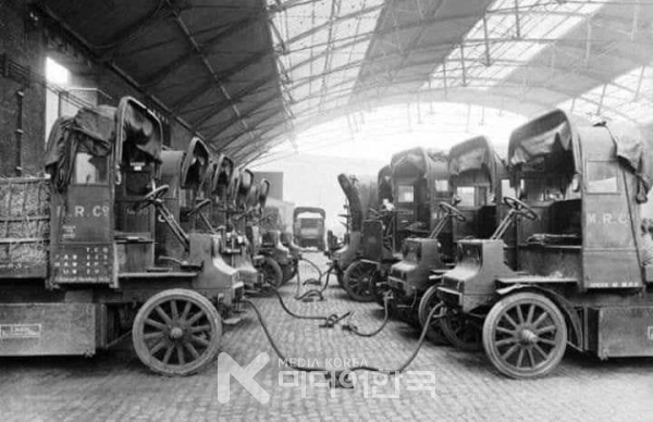 [미디어한국] 위 사진은 1917년에 충전 중인 전기자동차의 모습이다.