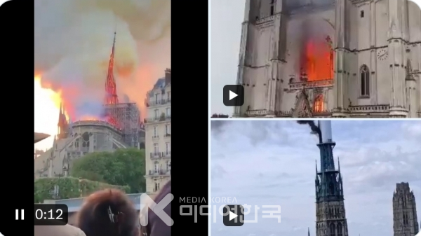 또한 2024년 7월 13일 토요일에 프랑스의 노트르담 대성당이 불길에 휩싸였다.