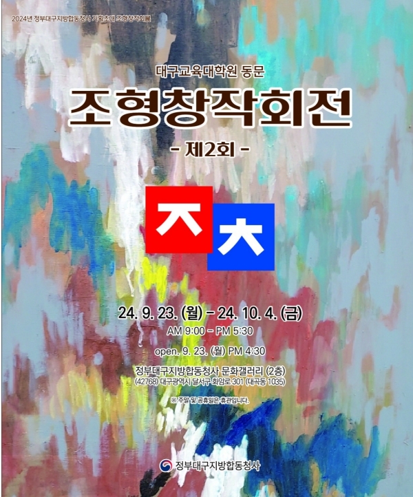 정부대구지방합동청사 문화갤러리(2층)에서 대구교육대학원 동문전이다. 전시 기간은 2024.9.23~(월)-2024.10.4(금)까지다.