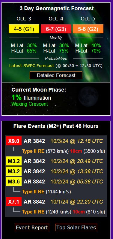 ●건강 경보로는 강력한 X7 및 X9 태양 플레어가 지구를 향해 큰 CME(코로나 질량 방출)를 방출했습니다.