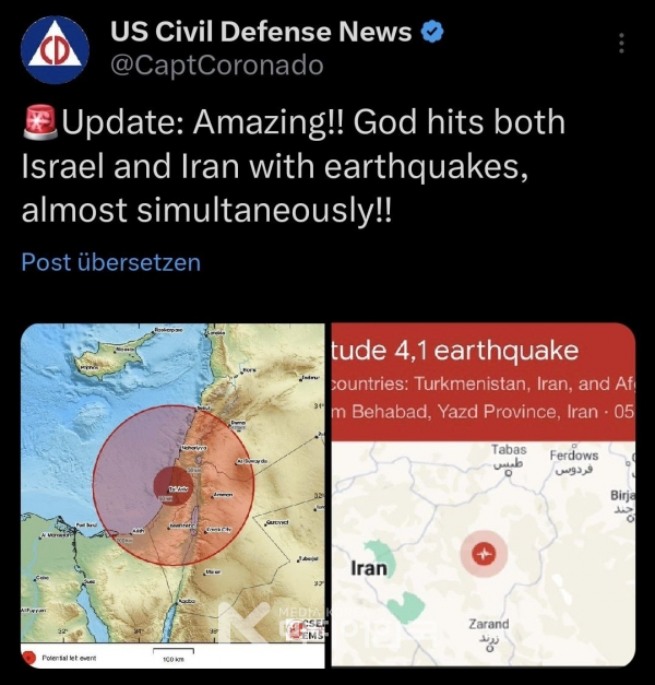 24년 10월 5일 이스라엘과 이란에서 동시에 발생한 지진..