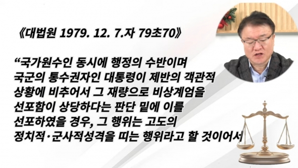 서정욱TV에서 대법원 판례에 따른 계엄령의 대법원 판례례다.