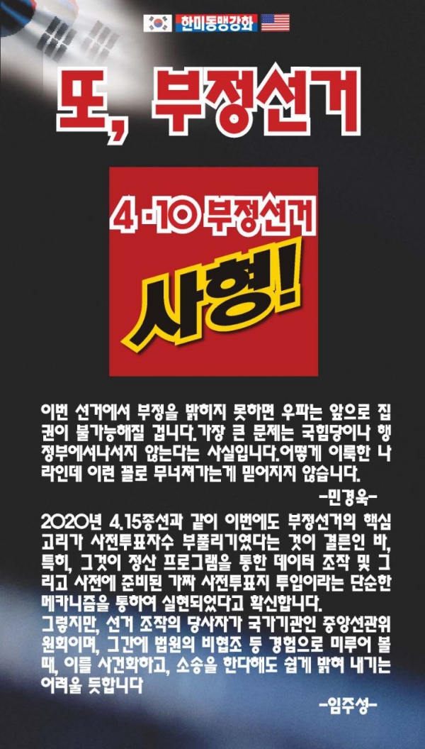 이러한 시비는 조해주, 고한석, 양정철, 김민석과 어떤 식으로든 연계가 되어 있고, 최근 4.10 총선 사전투표 조작과도 어떤 식으로든 관련이 있을 것으로 저는 확신합니다.