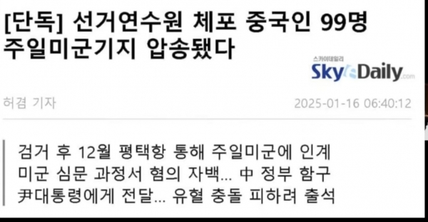 윤석열 대통령의 12.3비상계엄 당일 선거연수원에서 체포된 중국인 간첩 99명은 주일 미군기지(오키나와)로 압송됐다!