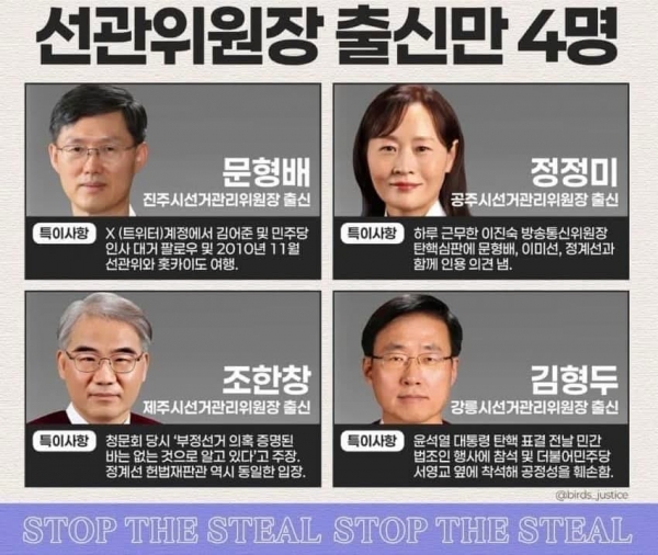 특히 법원의 판사들이 전국의 선관위원장의 책임자들이다.
