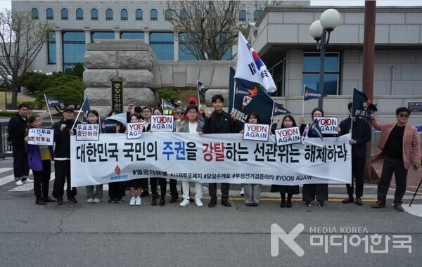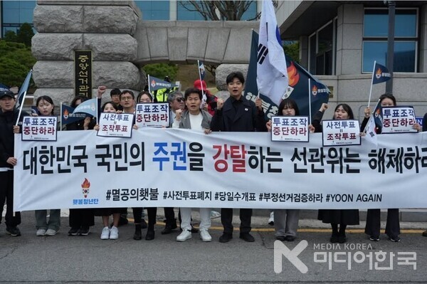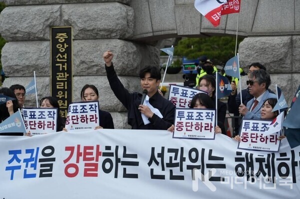 지난 4.19(토) 횃불 청년단이 중앙선거관리위원회 정문 앞에서 '선관위는 투표 조작을 중단하라'는 부정선거 규탄 기자회견을 했다.