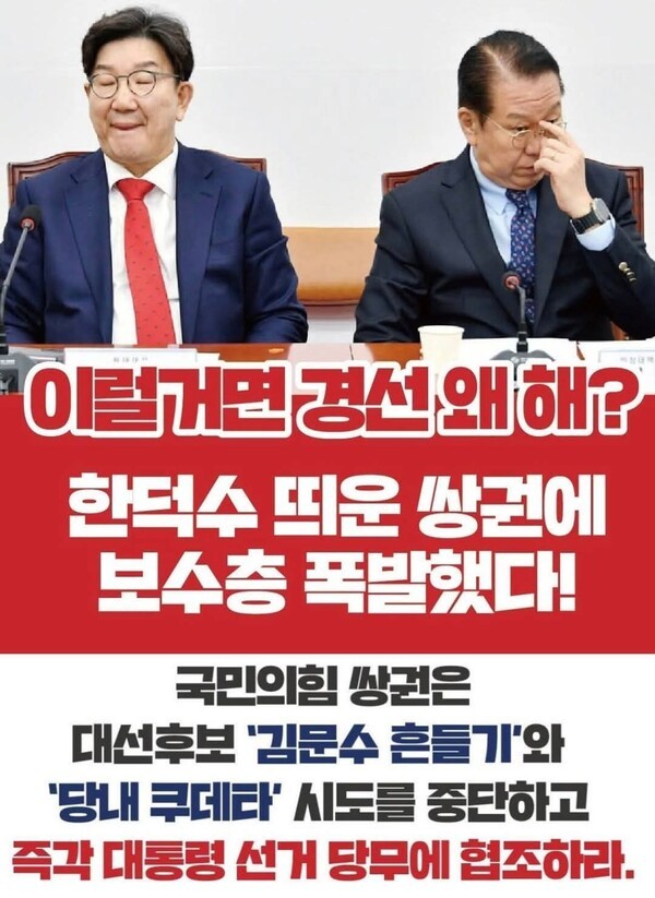 한덕수 전 총리를 뜨운 쌍권에 보수는 뿔났다. 홍준표 후보도 화가 났다. "경선 비용을 지불하라"(약 40~50억원)