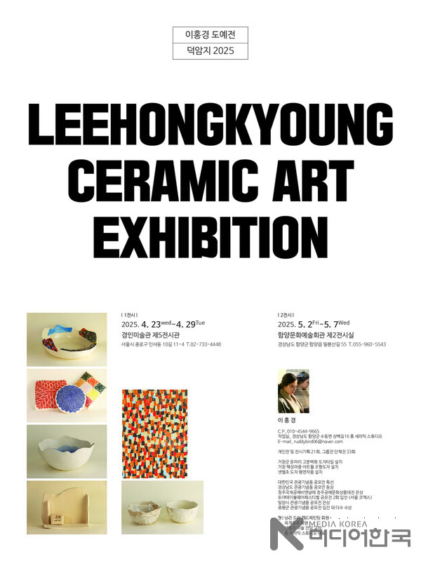 [미디어한국 조승희 기자] 도예가 이홍경은 가족과 함께 행복한 시간 보냈던 공간 ‘덕암지’ 주제로 함양에서 작업을 하고 있는 도예가로, 지난 4월 서울 인사동 경인미술관에 이어 5월 함양문화예술회관까지 순회 개인전시가 성황리에 개최가 되었다.