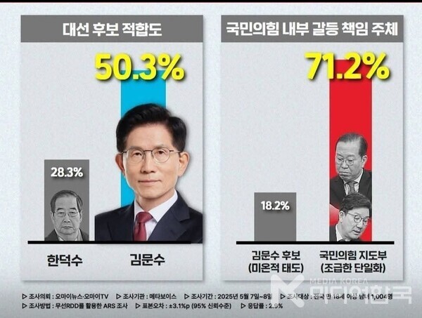 한편, 김문수 후보는 대선 여론조사는 불분명하나 빅데이터에서는 대선후보 적합도에서 앞서고 있다.
