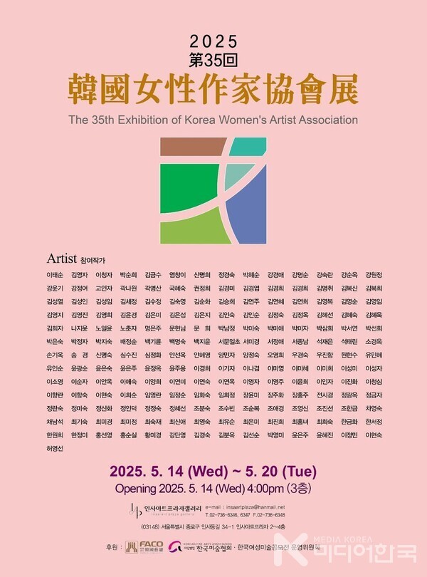 [미디어한국 조승희 기자] 제35회 한국여성작가협회 정기전이 인사동 인사아트프라자갤러리(회장 박복신) 2층~4층에서 200여명의 회원의 작품 전시회로 14일 오후4시 3층 전시장에서 오프닝을 시작으로 성황리에 열렸다.