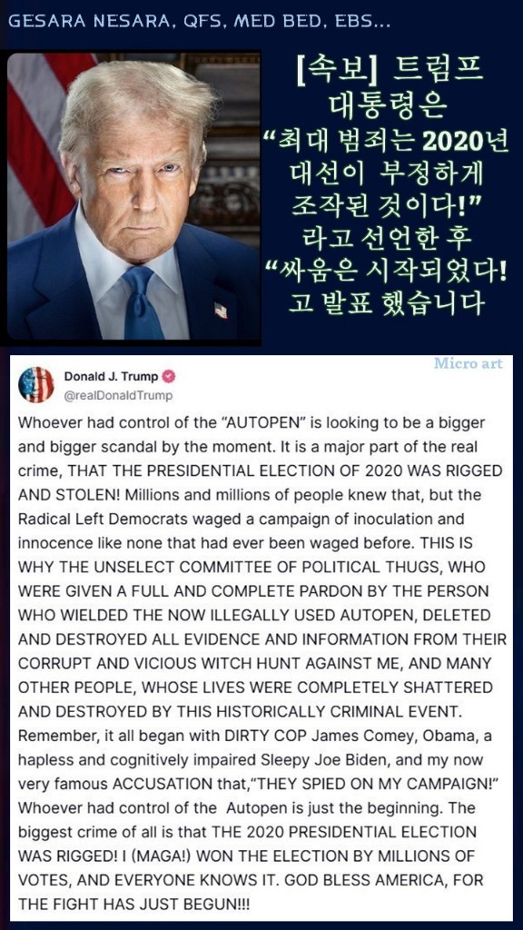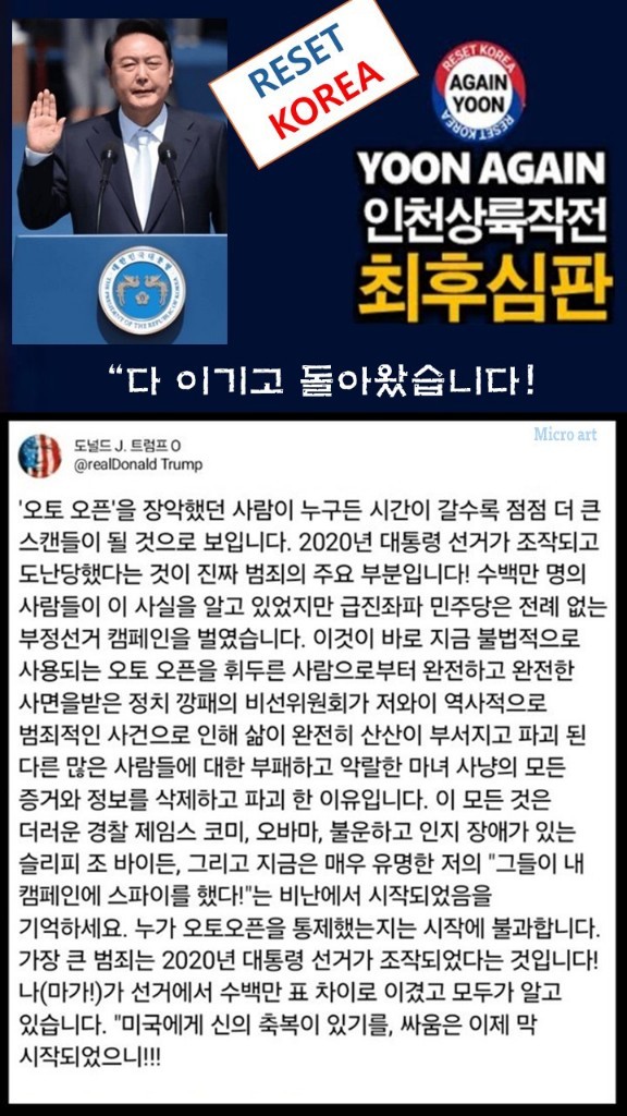[미디어한국] 미국 트럼프 대통령이 한미의 부정선거에 칼을 들었다.