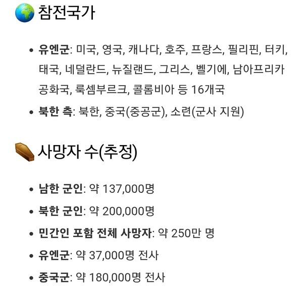 ●자유 대한민국을 남침해 사망한 중공 인민군은 18만여 명 사망