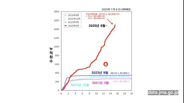 [미디어한국] 일본 난카이 대지진? 도카라 열도 지진 발생이 1500회가 넘어가고 있다.