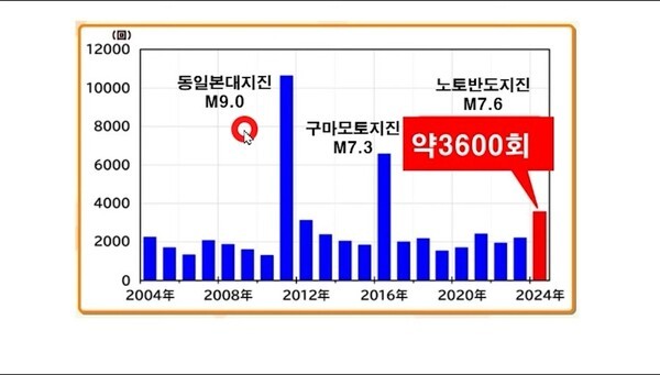일본 기상청에 따르면 동일본 지진에는 1만 번이나 발생했다. 그리고 한 방에 9.0의 강진에 쓰나미로 수만명이 사망했다.