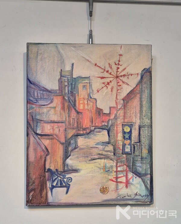 화가 심은하는 도시를 인간처럼 감각적으로 경험되는 인격체로 바라본다. 도시는 말없이 이야기하는 존재다. <Urban Adagio>는 그가 여행하며 만난 도시들의 역사와 문화, 언어와 향기를 감각적으로 조율한 풍경이며, <질서의 구조>에서는 기하학적 형태를 통해 무너질 듯 위태로우면서도 스스로 질서를 재편해가는 도시의 생명력을 표현한다. <창문 너머의 본질>은 현실과 시간을 초월해 존재하는 내면의 진실을 바라보는 창이며, <The Answer>는 작가가 풍경 속에서 직면한 응답의 순간을 시각화한 작품으로, 화폭 위에 직접 글귀를 더해 감정의 밀도를 높였다.