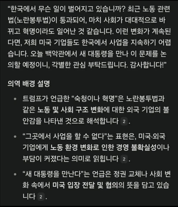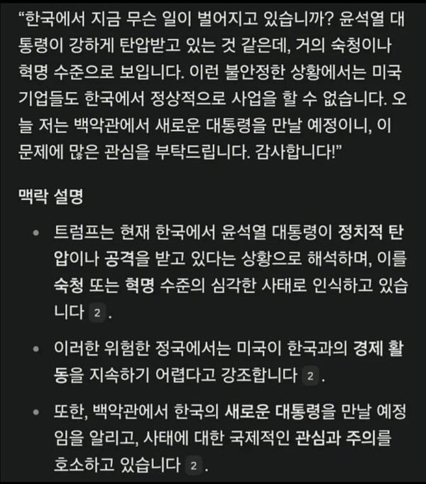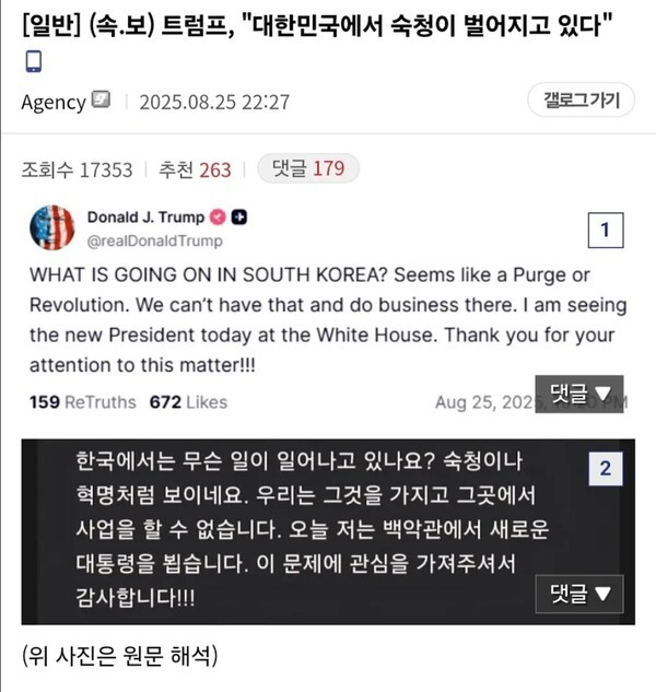 [미디어한국] 美 트럼프 대통령은 25일 한국에 숙청이나 혁명이 일어나?