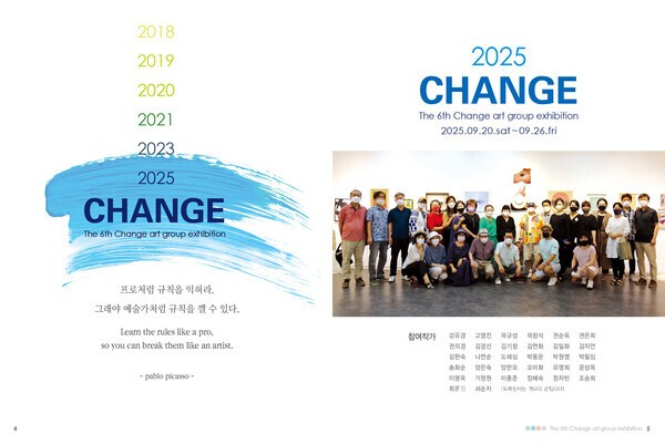 제6회 체인지전은 오는 2025년 9월 20일부터 일주일간 인사동 아지트갤러리(B1)에서 개최된다. 특히 지난해에는 회원들이 각자 열정적인 예술 활동과 다양한 행보로 인해 한 해 쉬었기에, 올해 다시 한자리에 모여 2년 만에 정기전을 여는 것이다. 오랜 인연 속에서 함께 성장해온 회원들이 창작의 결실을 모아 선보이는 만큼 이번 전시는 더욱 반갑고 뜻깊은 자리가 될 것으로 기대된다.