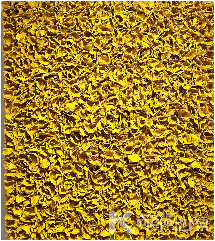 서예가이자 한지 회화가 노복환 화백의 작업은 누구에게나 존재하는 어린 시절의 기억, 가족의 따뜻한 정서, 삶의 흔적에서 출발한다. 그는 “삶의 공간은 개인의 기억과 정서가 축적된 장소이며, 시간의 흐름 속에서 형성된 수많은 경험과 추억이 층층이 쌓여 있다”고 말한다. 특히 어릴 적 어머니가 만들어 주던 수제비와 칼국수의 따뜻한 기억, 한문서예를 써오던 지난 40여 년의 세월, 그리고 삶 속에 차곡차곡 쌓인 추억들을 한지 작업을 통해 화면 위에 감성적으로 풀어낸다. 중국 진시황 시대 문자(상방대전)를 금분으로 쓰고, 이를 칼국수 형태로 시각화하는 독창적 작품으로 재탄생했다. 개인적 기억과 문자·조형 언어를 결합한 실험적 시도가 돋보인다.